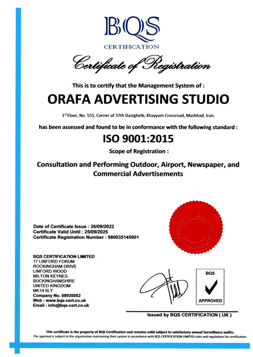 کسب گواهینامه بینالمللی مدیریت کیفیت (ISO 9001) جهت تضمین اجرای پروژهها با بالاترین استانداردهای جهانی.